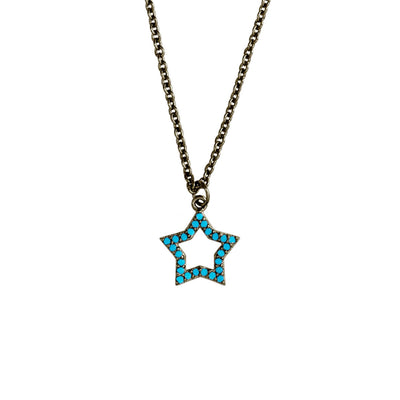 Elegant Confetti Women's 18K Black Gold Plated Simulated Turquoise Star Pendant Necklace 18k Black Gold
