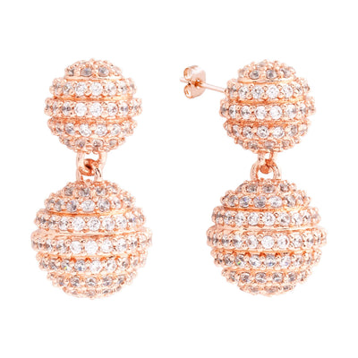 Elegant Confetti Women's 18K Rose Gold Plated CZ Simulated Diamond Pave Ball Drop Statement Earrings 18k Rose Gold