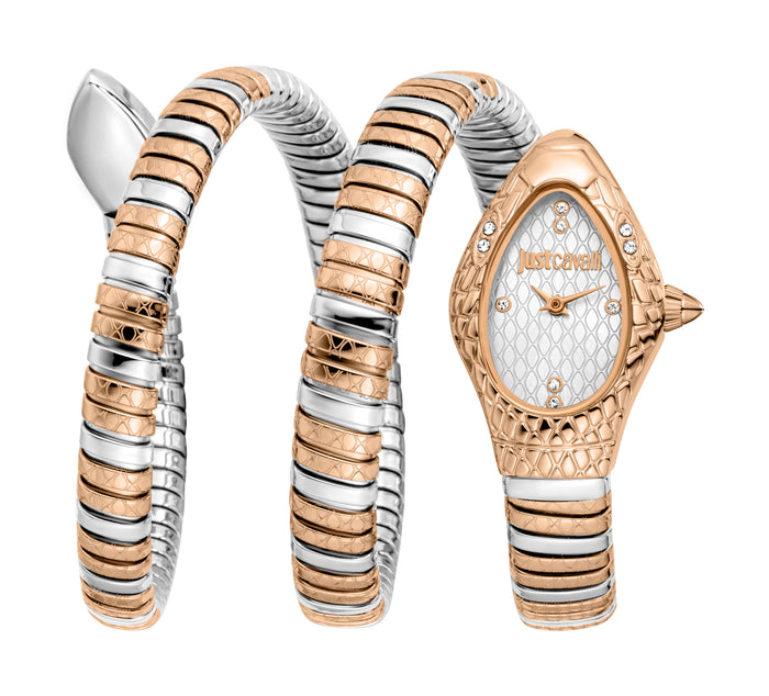 Just Cavalli 20mm / Silver and Rose Gold / Long | Silver Dial
