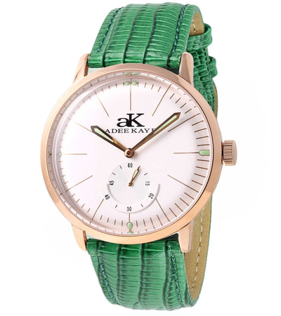 ADEE KAYE MEN'S TY2705 - 21 JEWELS AUTOMATIC MECHANICAL, ONE SUB-DIAL DISPLAYING: 60 SMALL SECOND HANDS. GREEN GENUINE LEATHER BAND