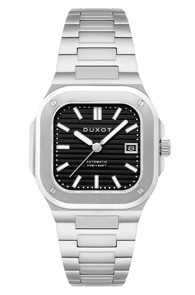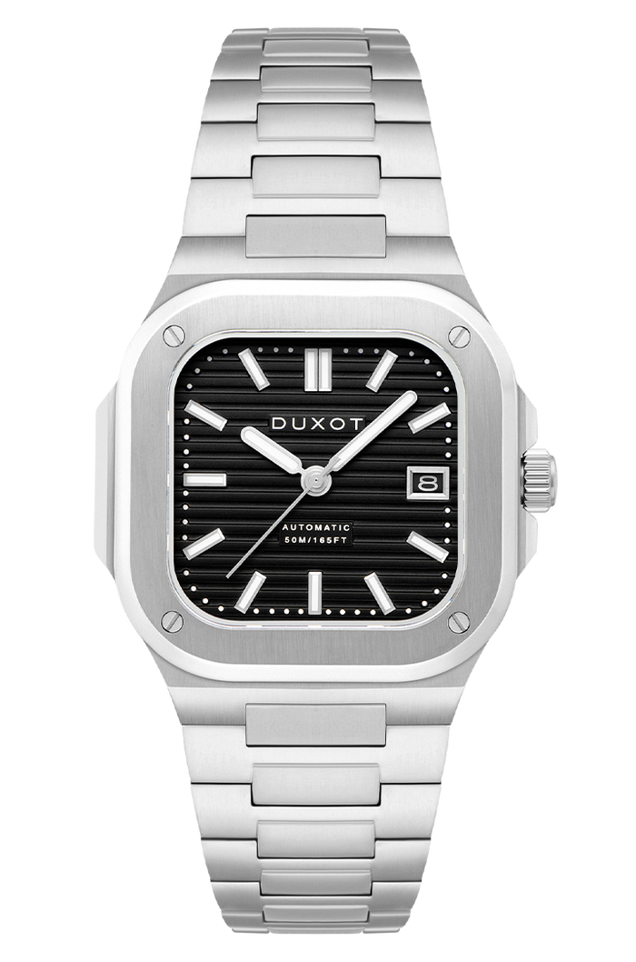 The Quadrata Automatic is a celebration of timeless square case design. Sized at 42mm, this timepiece is powered by a precise Japanese automatic movement with an exhibition caseback that reveals the mechanical artistry within. Finished with a solid stainless steel bracelet and butterfly clasp, the Quadrata embodies the modern aesthetics of minimalism and symmetry.