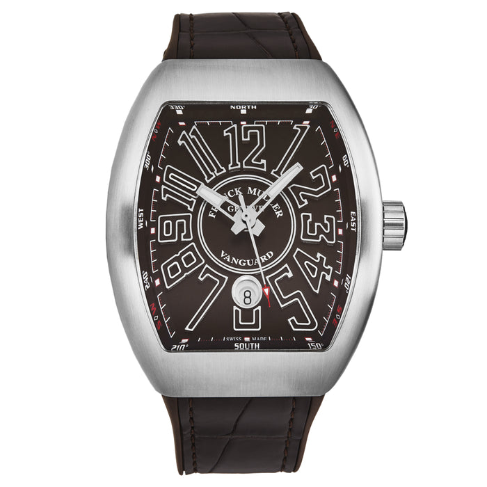 Franck Muller Men's 'Vanguard' Brown Dial Brown Rubber withe Leather insert Strap Swiss Automatic Watch 45SCSTLBRNBRSH