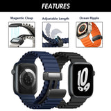 2 Pack - Magnetic Clasp Silicone Ocean Ripple Band for Apple Watch Ultra & Series 9/8/7/6 Black and Orange - 49mm/45mm/44mm/42mm |  Dial
