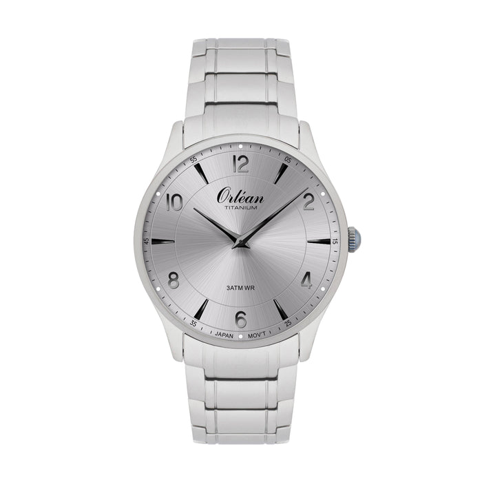 Made with a high quality, lightweight titanium case and band, the Orlean 41mm full titanium analog men's watch is the perfect everyday dress watch and with a precise Miyota Japanese quartz movement you'll always be on time.