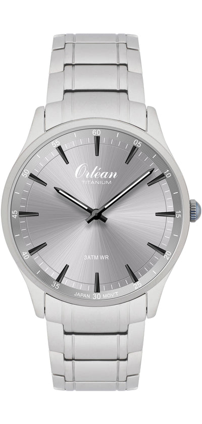 Made with a high quality, lightweight titanium case and band, the Orlean 41mm full titanium analog men's watch is the perfect everyday dress watch and with a precise Miyota Japanese quartz movement you'll always be on time.