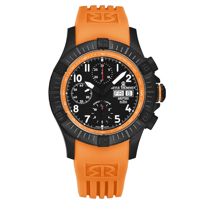 Revue Thommen Men's 'Air speed' Black Dial Orange Rubber Strap Automatic Watch 16071.6779