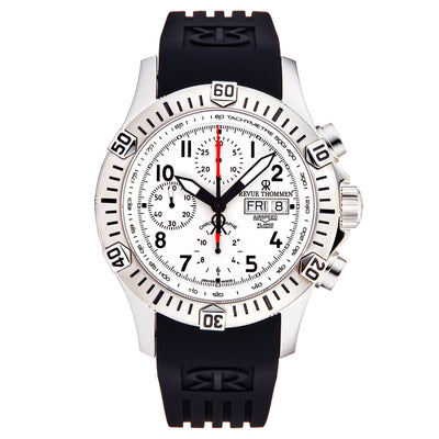 Revue Thommen Men's 16071.6822 'Airspeed' Silver Dial Day-Date Rubber Strap Chronograph Automatic Watch
