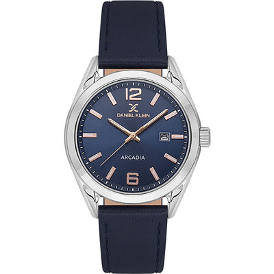 Arcadia ER - Date - Leather Strap - DK13692 Silver / Blue Dial | Blue Dial
