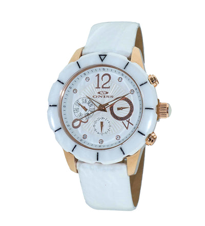 Oniss MIYOTA -6P29 Multi-FunCtion -24hr Master Calendar Day-date Counter, White High-tech Ceramic Case and White Genuine Leather Band.