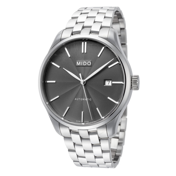 Mido Men's Belluna II 40mm Watch M0244071106100. The case is built with high-quality Stainless Steel and can with stand up to 50 m (165 feet) of water resistance. The dial is Black and protected by a Sapphire Crystal Scratch Resistant. The Bracelet is Silver Stainless Steel and the movement is Automatic. (M0244071106100)