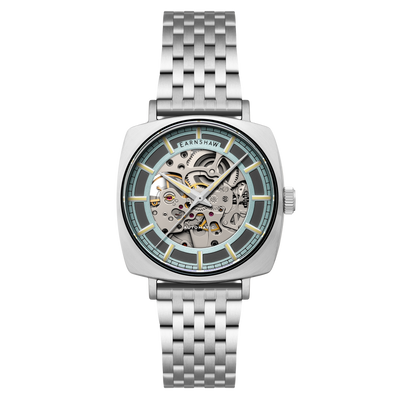 Inspired by one of Londons historic gateways, the Moorgate pays tribute to a place where tradition and innovation converge.Its polished 40mm square case draws attention with sleek boldness. The skeleton dial reveals the intricate automatic movement within. Paired with an exhibition caseback, the Moorgate invites you to experience the artistry of time.