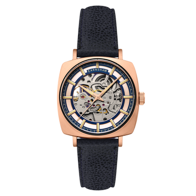 City Of London Moorgate Skeleton Automatic Rose Gold / Genuine Leather Strap | Rose Gold Dial