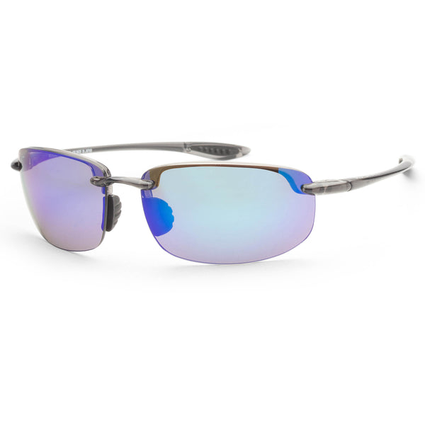 Dimensions: 64 mm x 14 mm x 140 mm - Frame Color: Grey - Frame Shape: Rectangular - Frame Material: Plastic - Lens Color: Blue Hawaii Mirror - Lens Protection: 100% UV Protection - Polarized