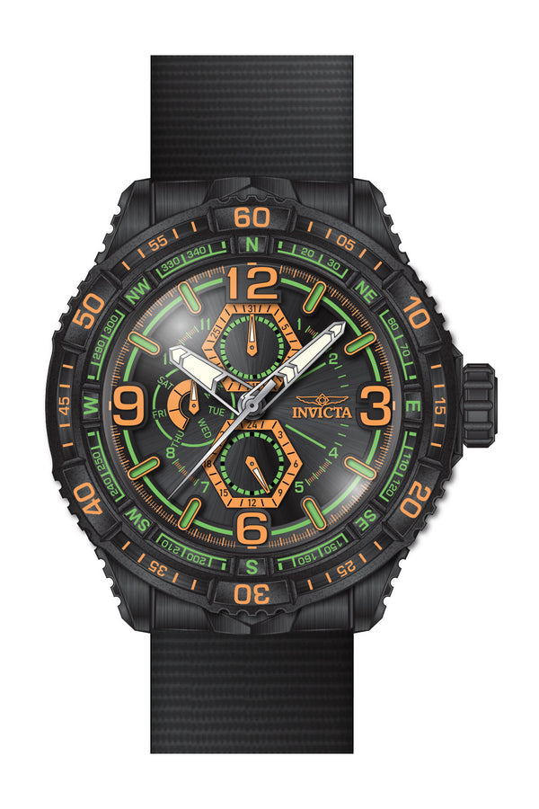 Invicta Men's Coalition Forces Quartz Watch. The case is built with high-quality Stainless Steel and can withstand up to 100 m (330 feet) of water resistance. The dial is Black and protected by a Mineral Crystal. The Strap is Black Nylon with a Pin Buckle. The movement is Made in Japan Quartz. (IN-49632)