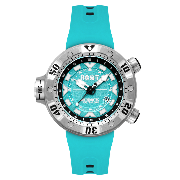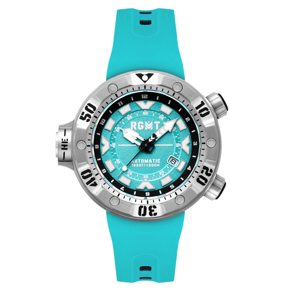 Named after one of the most formidable tools in naval history, the Depth Charge is purpose-built for deep-water dominance with an exceptional 50 ATM water resistance rating, The Depth Charge is also equipped with a helium release function and full luminous application across index, hands, and bezel. It is one of the toughest dive instruments in the RGMT arsenal.
