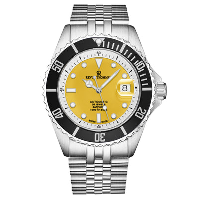 Revue Thommen Men's 'Diver' Yellow Dial Stainless Steel Bracelet Swiss Automatic Watch 17571.2930