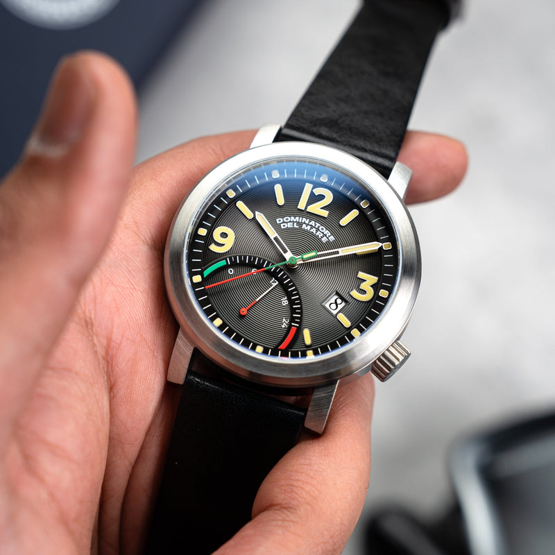 Each Dominatore Del Mare Atrani Retrograde watch comes with a Japanese Automatic Movement, A 45mm Case size and a Leather strap