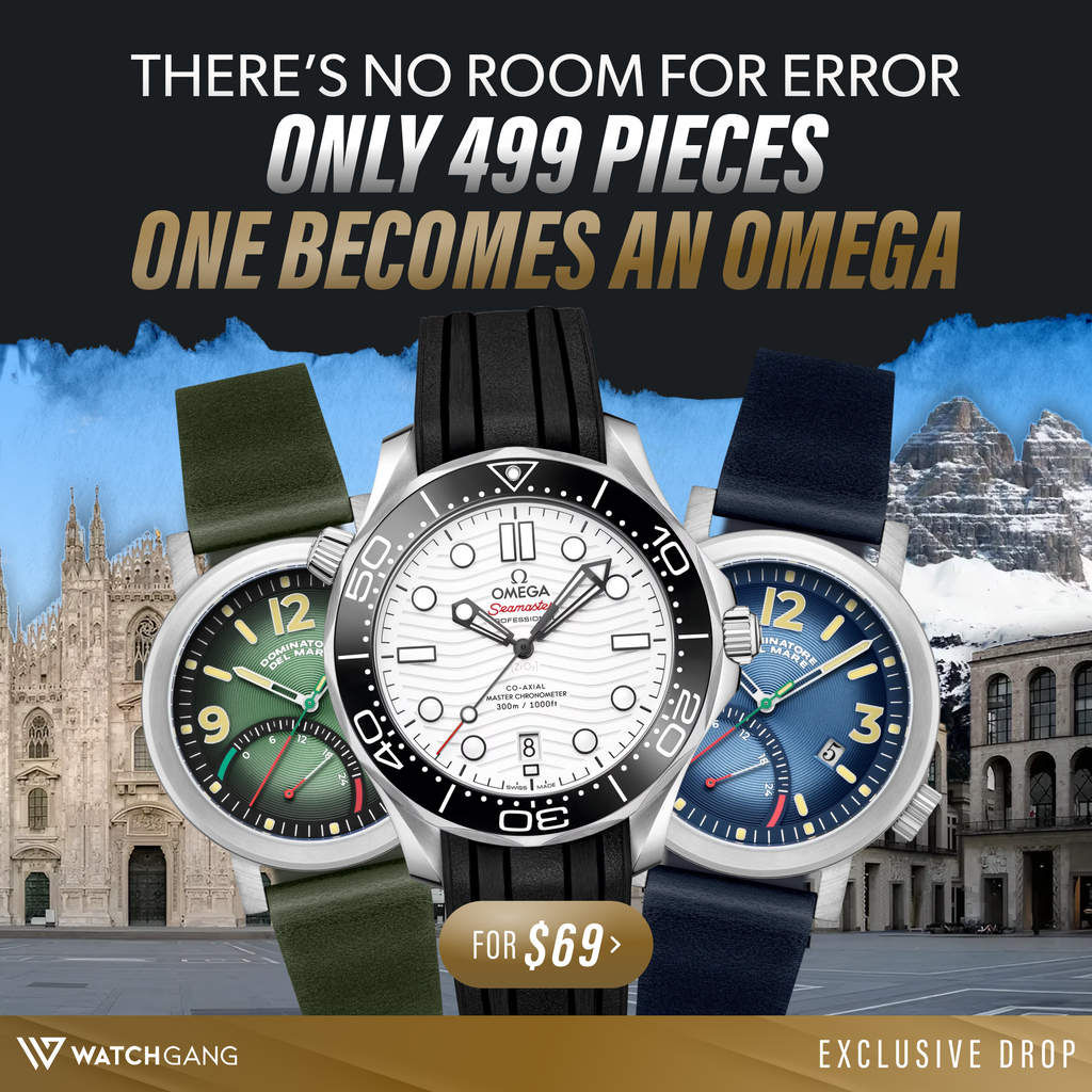 Introducing the "Dominatore Del Mare Atrani Retrograde 2 Omega Seamaster Drop" — where every purchase is guaranteed to deliver (1 of 5) Colorways of a Dominatore Del Mare Atrani Retrograde Watch and (1) LUCKY BUYER will walk away with an upgrade to a Omega Seamaster (~$6000 Value)