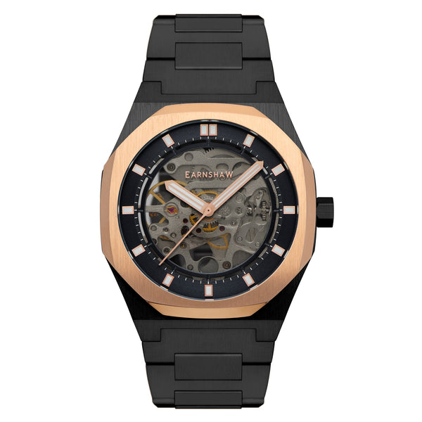Stylish and sophisticated, the Drake displays the inner workings of its self-powered, skeleton Automatic movement through the dial. A full expression of centuries of watchmaking.