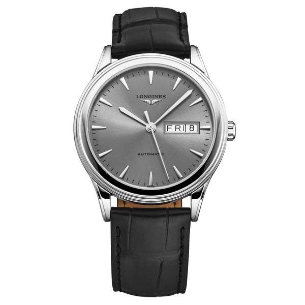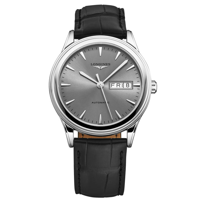 Longines Men's 'Flagship' Silver Dial Leather Strap Automatic Watch L4.899.4.72.2