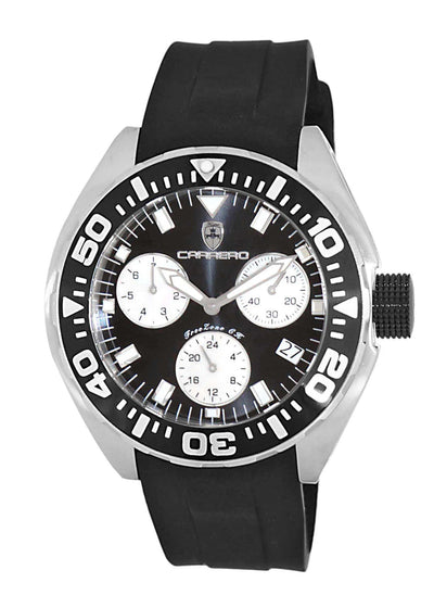 TORINO CARRERO FreeZone-CH, Men's Swiss Multi-Functiom Ronda X30 Movement, Black Dial with White MOP Sub-dial- Black Bezel - IP Black Crown, Silicon Band