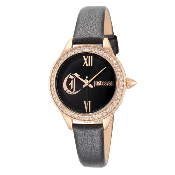 Just Cavalli Women's Glam Chic 30mm Watch. The case is built with high-quality Stainless Steel and can with stand up to 30 m (100 feet) of water resistance. The dial is Black and protected by a Mineral Crystal. The Strap is Black Leather and the movement is Quartz (JC1L316L0035)