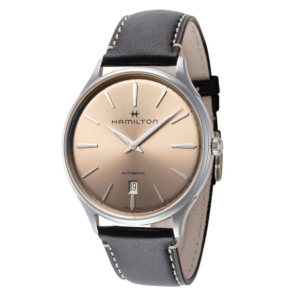 Hamilton Men's Jazzmaster 40mm Watch H38525721. The case is built with high-quality Stainless Steel and can with stand up to 50 m (165 feet) of water resistance. The dial is Brown and protected by a Sapphire Crystal Scratch Resistant. The Strap is Black Leather and the movement is Automatic. (H38525721)