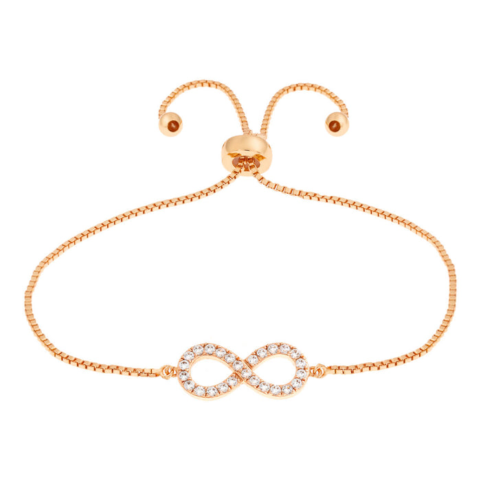 Our infinity bolo bracelet collection features a stone clad infinity symbol and an adjustable bolo clasp. The finished product is ideal for everyday wear and great for gift-giving.