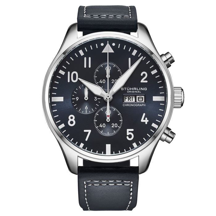 Navigator Chrono Navy Blue Sunray Dial/Blue Leather Strap | Blue Dial