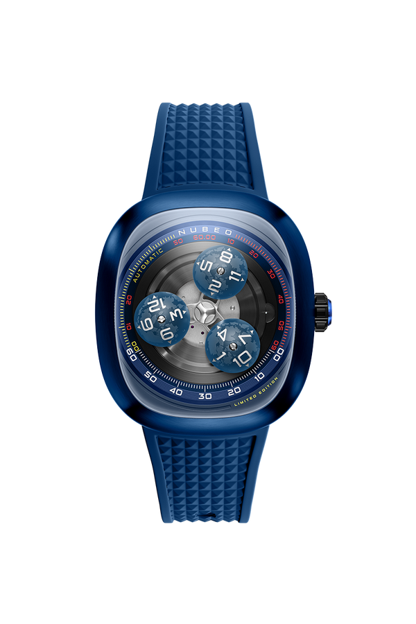 A visual spectacle as captivating as the cosmos itself. At the heart of this timepiece lies a custom-engineered wandering hours complication. Unlike traditional time displays, the three dome-shaped hour hands emulate stars in orbit each sculpted with surface textures reminiscent of celestial bodies, revolving dynamically around a central carousel to mark the passage of time.