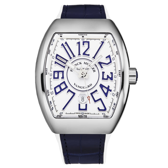 Franck Muller Men's 'Vanguard' White Dial White Rubber with Blue Leather insert Strap Automatic Watch 45SCWHTWHTBLU-2