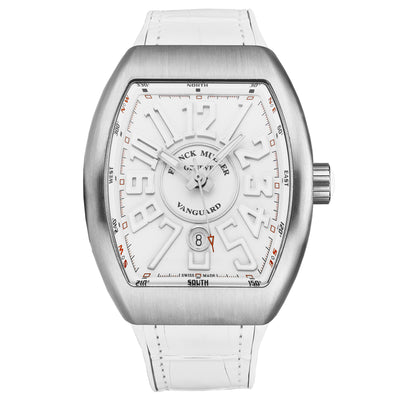 Franck Muller Men's 'Vanguard' White Dial White Rubber with Leather insert Strap Automatic Watch 45SCWHTWHTWHT-1