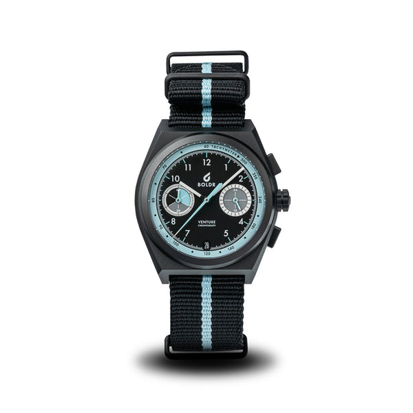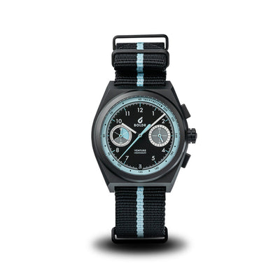 Titanium chronograph with tachymeter, VK64 mecaquartz, improved legibility, nylon strap