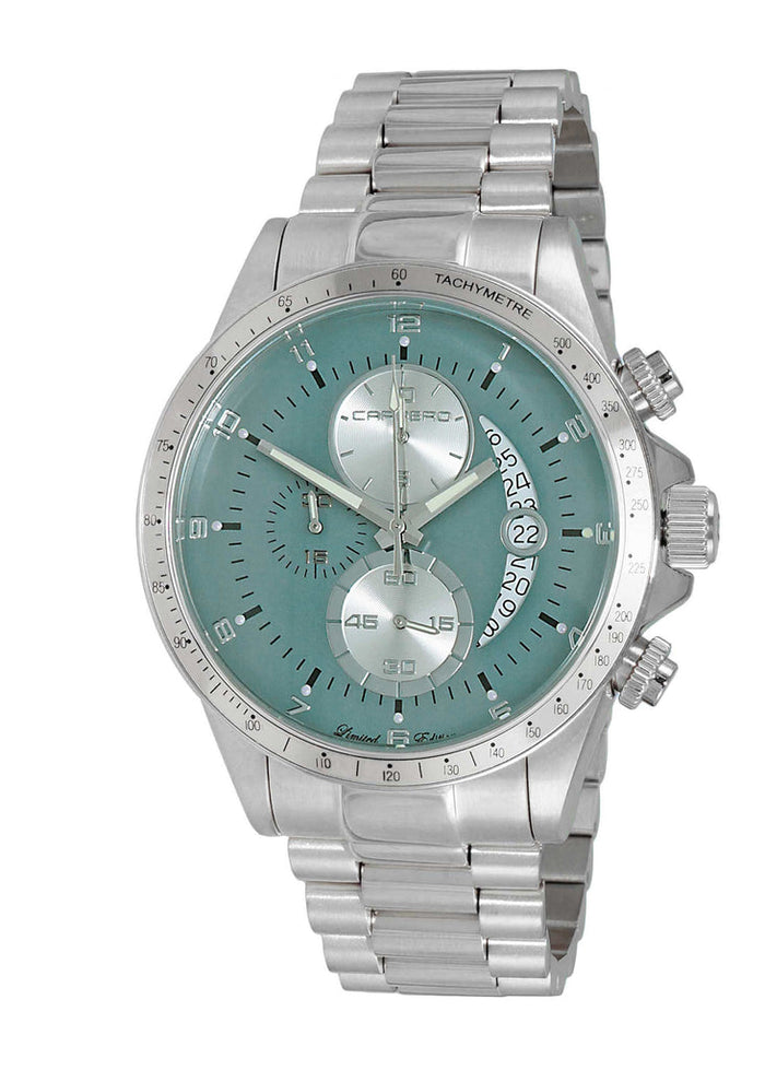 Men's Swiss-Ronda Chronograph Mov't, Teal Green-Date Dia, Stainless steel case and band.